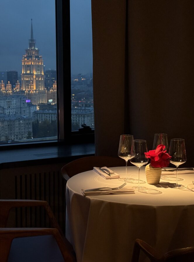 Камерный видовой ресторан, сосредоточенный на вине. Открыли этот проект красноярцы Александр Митраков и Александр Кучеров (шеф). Собственно, московский ресторан произошел от одноименного и громкого заведения в Красноярске.